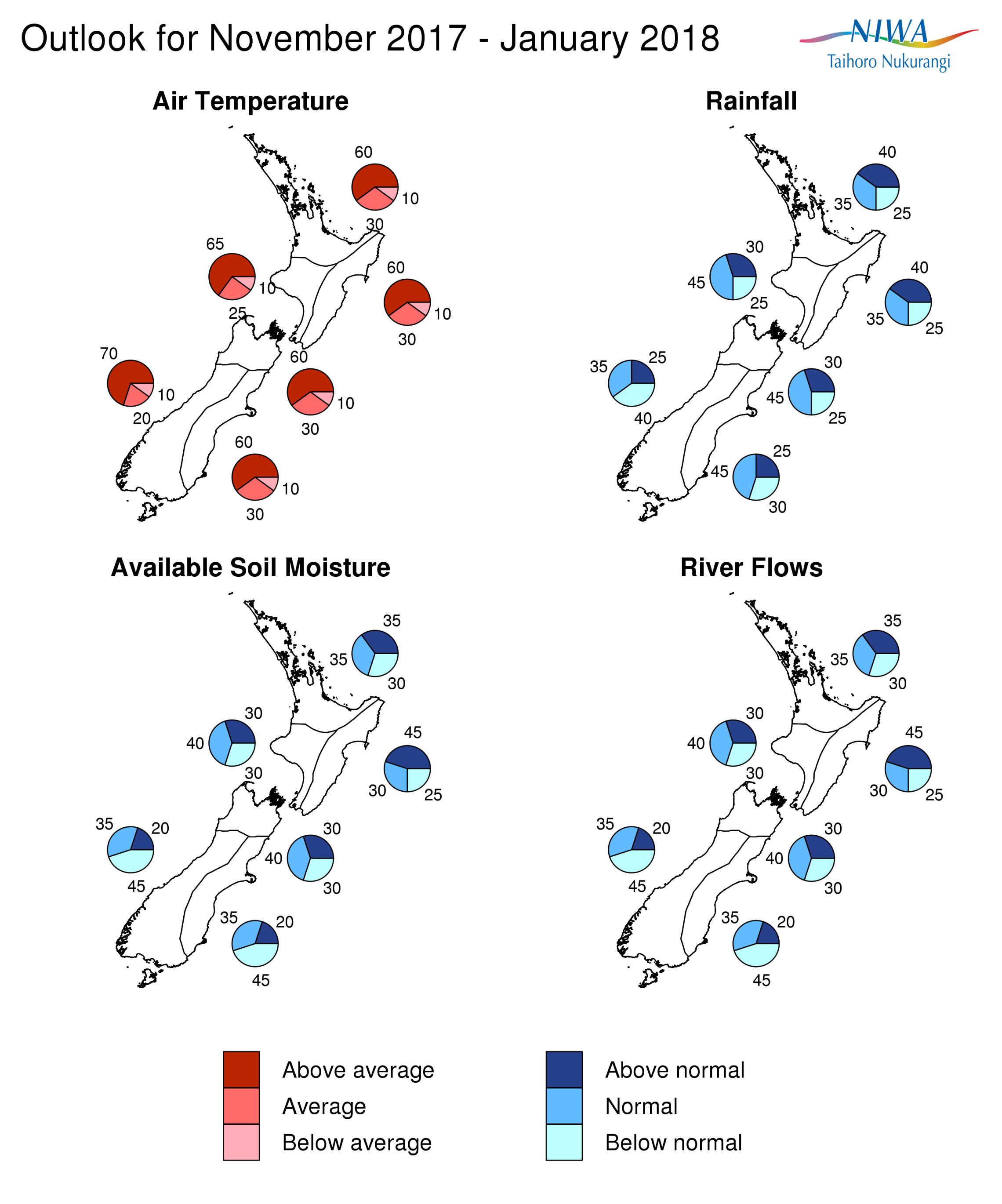Graphical representation of the regional probabilities, Seasonal Climate Outlook, November-January.