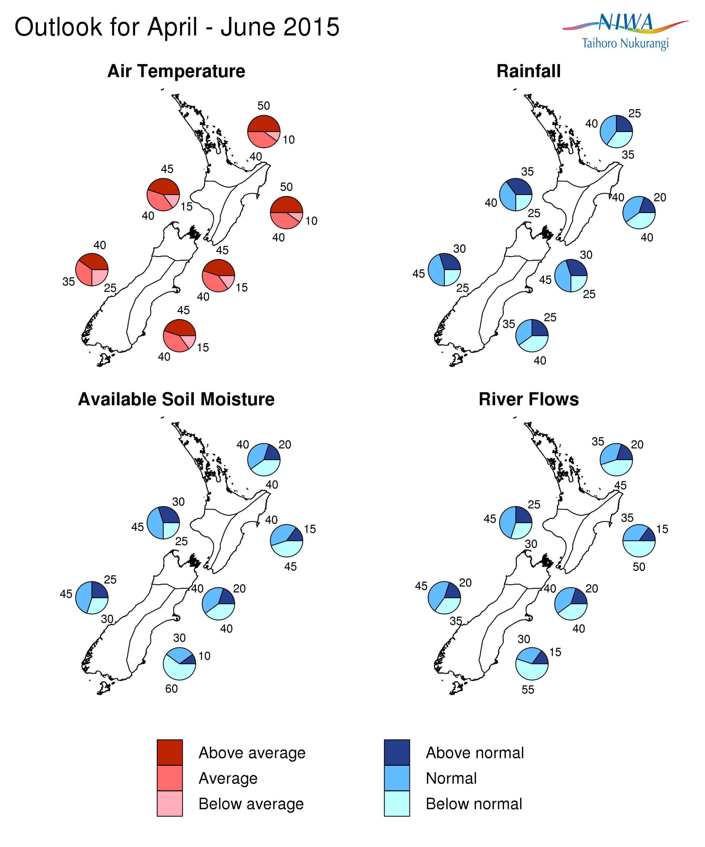 Graphical representation of the regional probabilities, Seasonal Climate Outlook, April-June 2015.