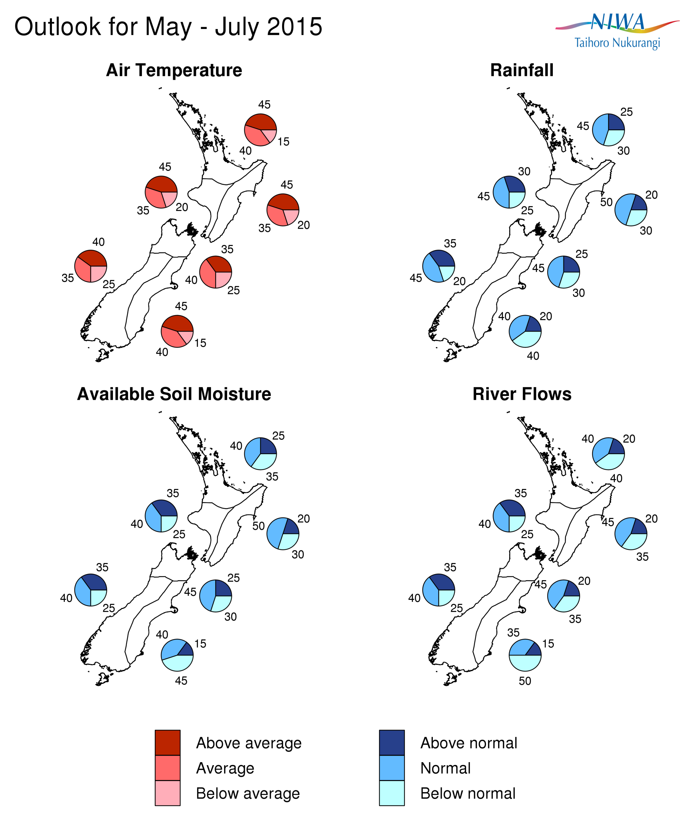 Graphical representation of the regional probabilities, Seasonal Climate Outlook, May-July 2015.