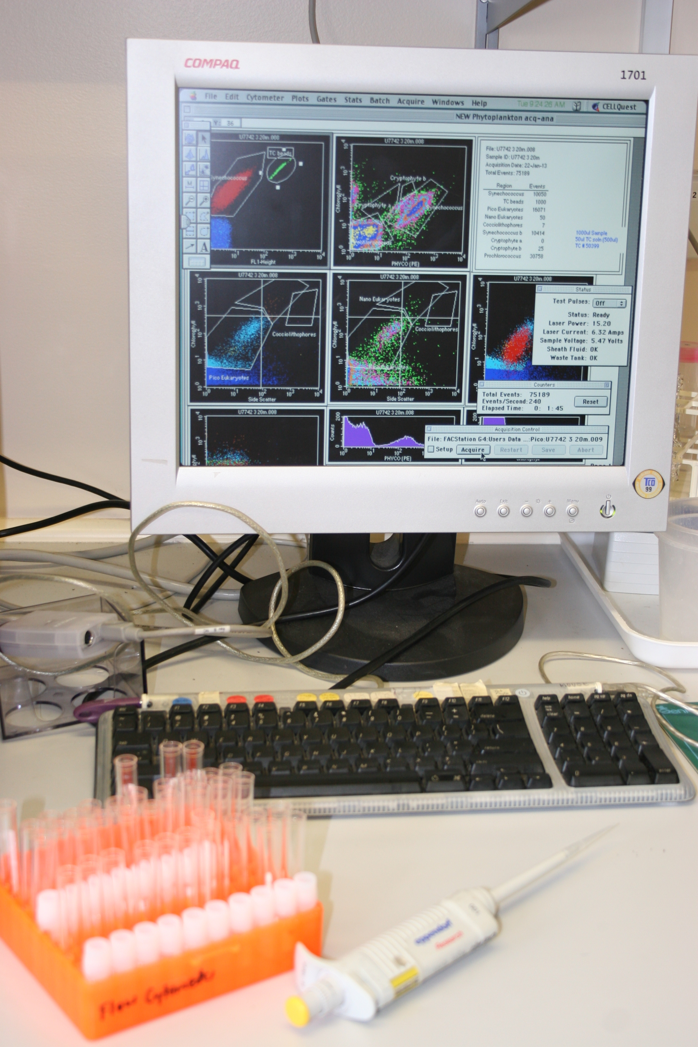 Output from NIWA's FACSCalibur flow cytometer. Credit: Karen Thompson