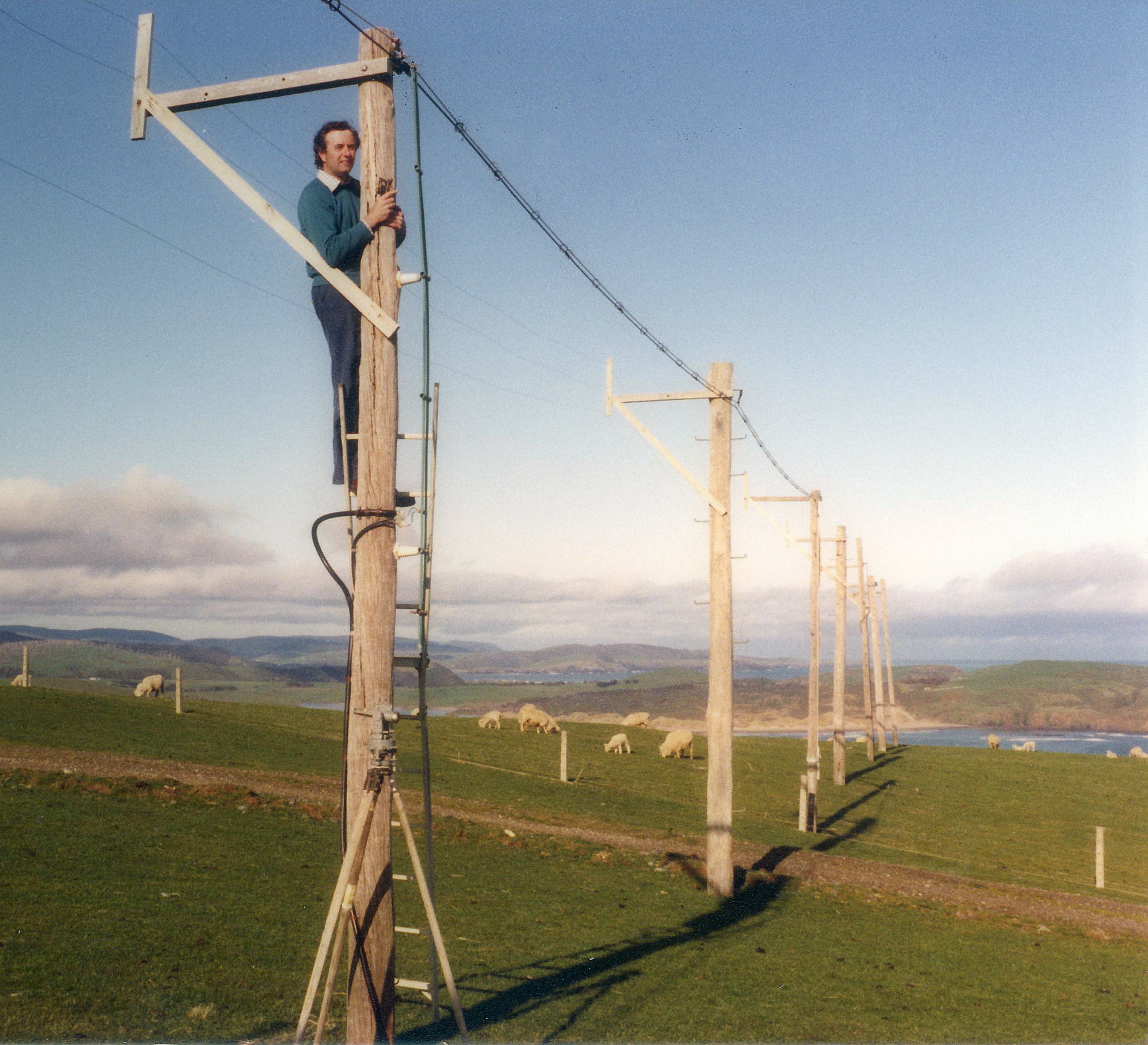 Paul Johnston checks a narrow beam radar antenna. 1978.