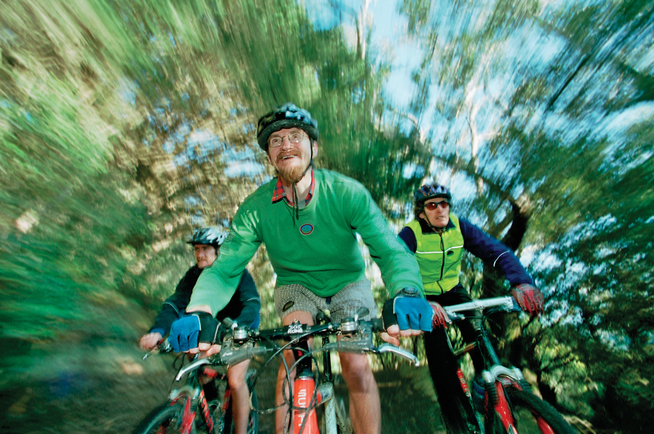 Paul Kennett (centre) and his brothers Simon (left) and Jonathon. The concept of eco-friendly transition towns, says Paul, offers people a “social response” to environmental issues. Credit: Dave Hansford