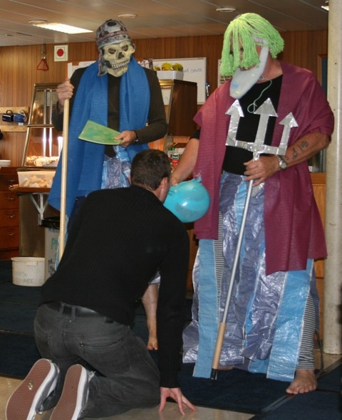 Daniel Hayward (2nd Mate) paying suitable homage to King Neptune.