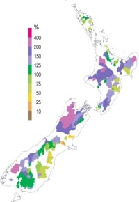 Percentage of average June 2004 streamflows for rivers monitored in national and regional networks.