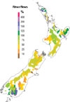 Percentage of average March river and stream flows at monitored catchments. NIWA field teams, regional and district councils, and hydropower companies are thanked for providing data.