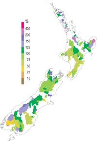 Percentage of average May 2004 streamflows for rivers monitored in national and regional networks