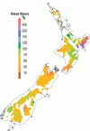 Percentage of average November river and stream flows at monitored catchments. NIWA field teams, regional and district councils, and hydropower companies are thanked for providing data.
