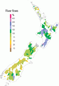 Percentage of average October 2004 streamflows for rivers monitored in national and regional networks