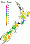 Percentage of average October river and stream flows at monitored catchments. NIWA field teams, regional and district councils, and hydropower companies are thanked for providing data.