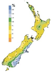 Percentage of average rainfall for April 2002. (Click to enlarge)