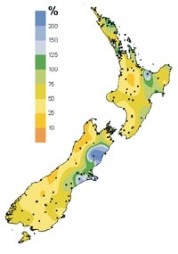 Percentage of average rainfall for April 2003. (Click to enlarge)