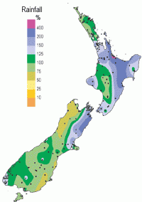 Percentage of average rainfall for April 2005. (Click to enlarge)
