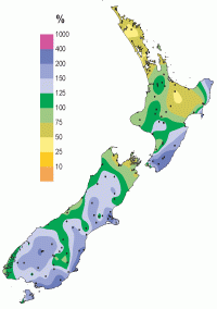 Percentage of average rainfall for August 2004. (Click to enlarge)