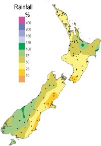 Percentage of average rainfall for August 2005. (Click to enlarge)