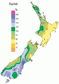 Percentage of average rainfall for February 2005. (Click to enlarge)