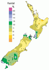 Percentage of average rainfall for January 2005. (Click to enlarge)