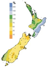 Percentage of average rainfall for July 2002. (Click to enlarge)