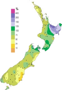 Percentage of average rainfall for July 2004. (Click to enlarge)
