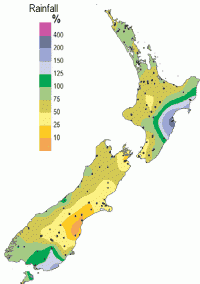 Percentage of average rainfall for June 2005. (Click to enlarge)
