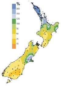 Percentage of average rainfall for March 2003. (Click to enlarge)