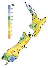 Percentage of average rainfall for May 2002. (Click to enlarge)