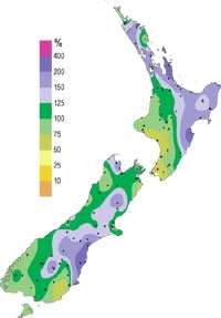 Percentage of average rainfall for May 2004. (Click to enlarge)