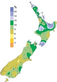 Percentage of average rainfall for October 2003. (Click to enlarge)