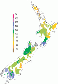 Percentage of average September 2004 streamflows for rivers monitored in national and regional networks