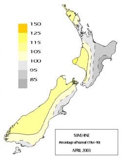 Percentage of normal sunshine April 2003