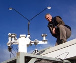 Perched atop the optics building at NIWAs Lauder campus, Richard checks the solar tracker.