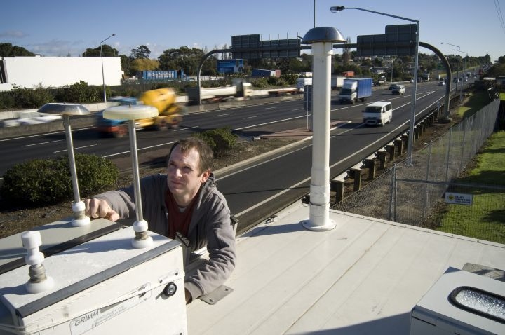 NIWA air quality scientist, Dr Ian Longley with an air quality monitoring station (Dave Allen)