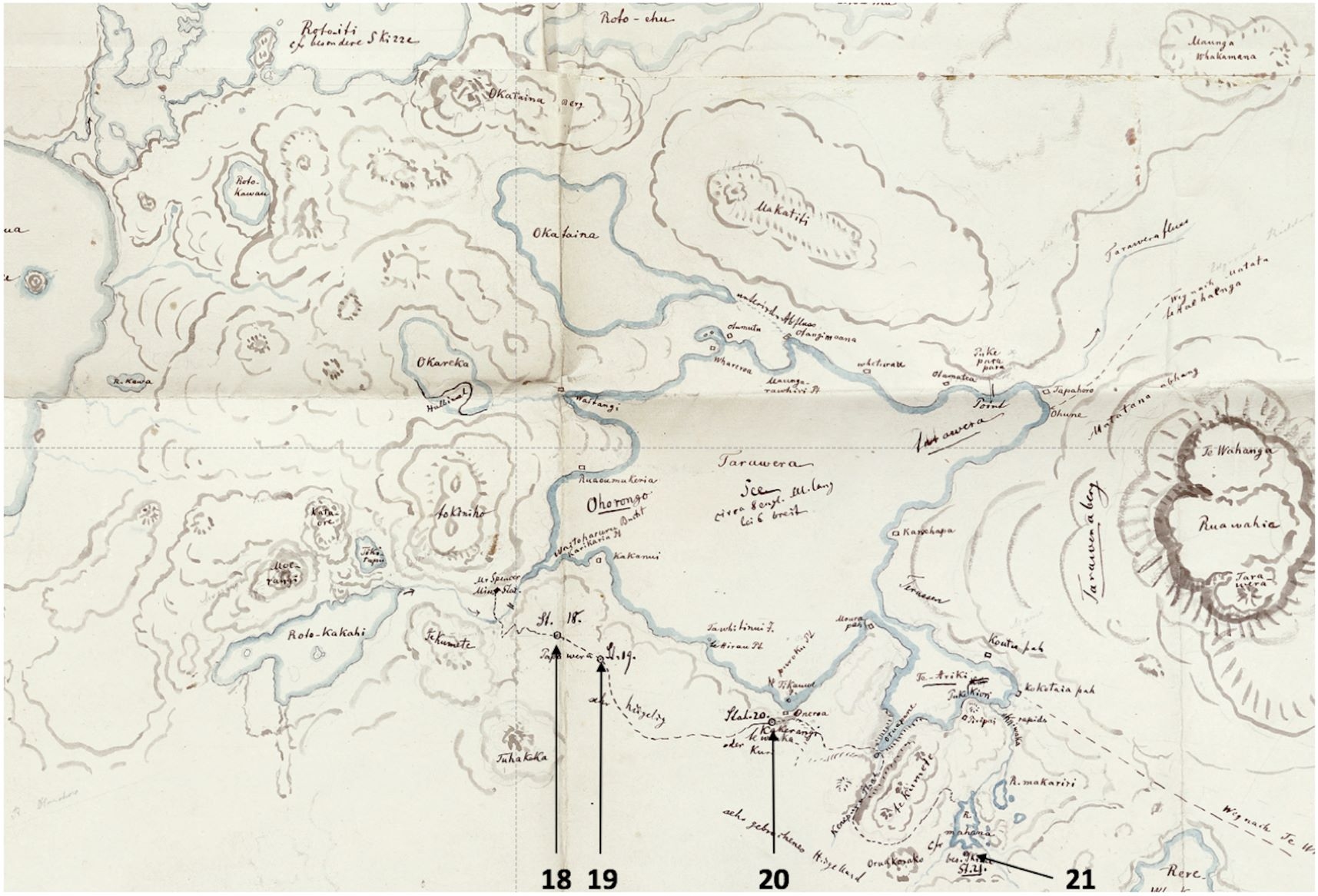 Sketch map of Rotorua by Ferdinand von Hochstetter that encapsulates major landforms in the region. Reproduced from (Nolden and Nolden, 2013) and modified with authors' permission.