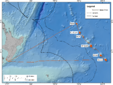 Our port to port voyage track and location of the seamounts along the Louisville Ridge is shown in the figure above.