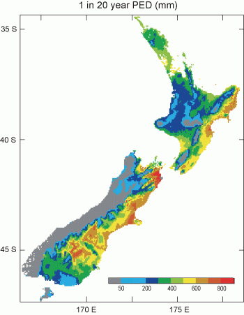 Potential evapotranspiration deficit (mm) that is likely to be equalled or exceeded once every 20 years.