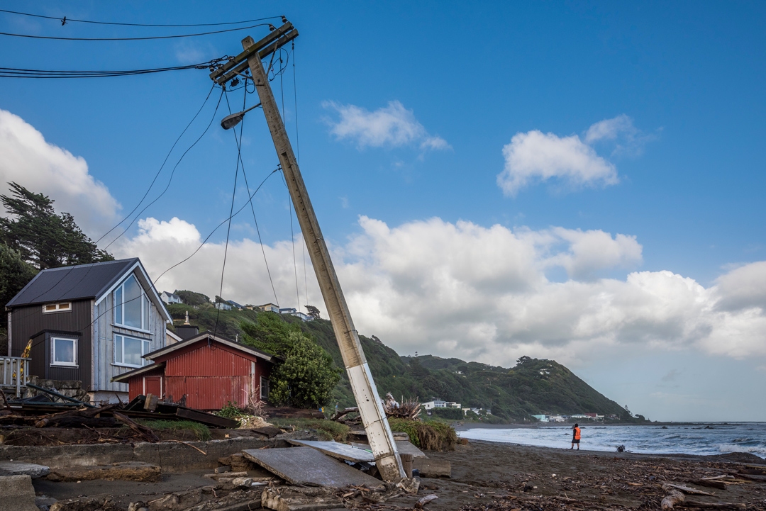 Ex-Cyclone Gita sent sea swells smashing into Pukerua Bay, north of Wellington, in February 2018. The storm surge cut State Highway One and caused widespread damage.