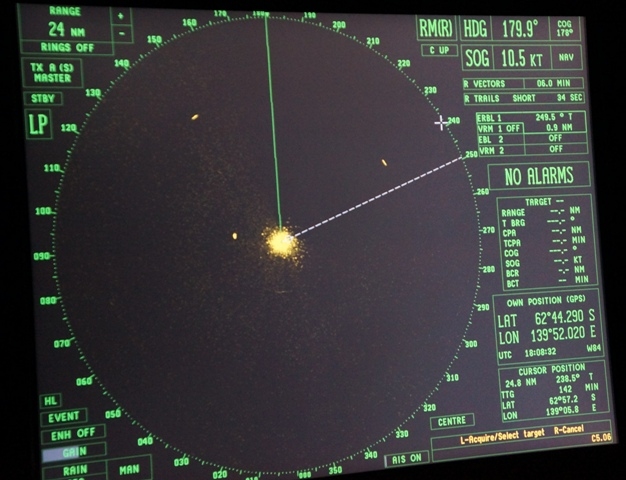 Radar screen with 3 icebergs.