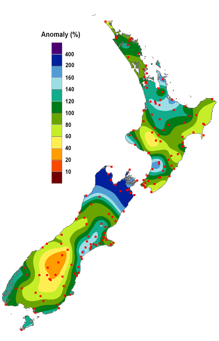 Percentage of normal rainfall for April 2013.