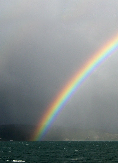 Rainbow over Wellington Harbour. Seasonal rainfall outlooks predict the chances of a range of three-month rain totals, not individual events. (Photo: Wendy St George)