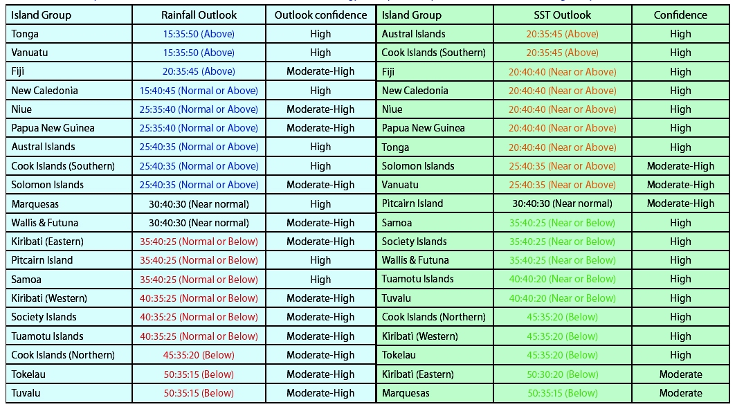 Rainfall and sea surface termperature estimates for pacific islands for the next three months - ICU 137