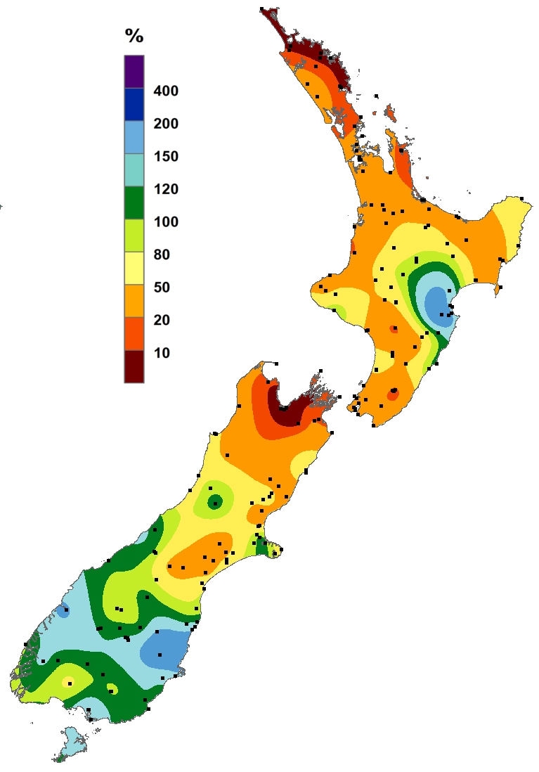 Percentage of normal rainfall for January 2019
