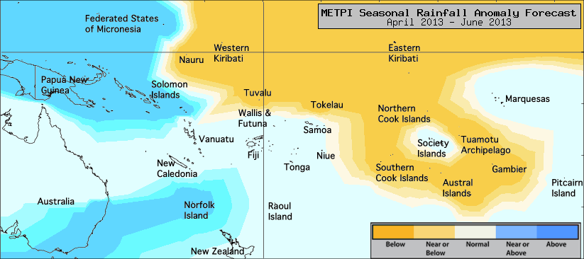 Rainfall anomaly outlook map for April to June 2013