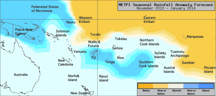 Rainfall anomaly outlook map for November 2013 - January 2014