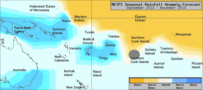 Rainfall anomaly outlook map for September to November 2013