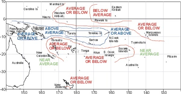 Rainfall outlook map for August to October 2003