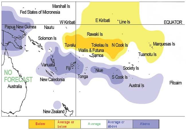 Rainfall outlook map for May to July 2009.