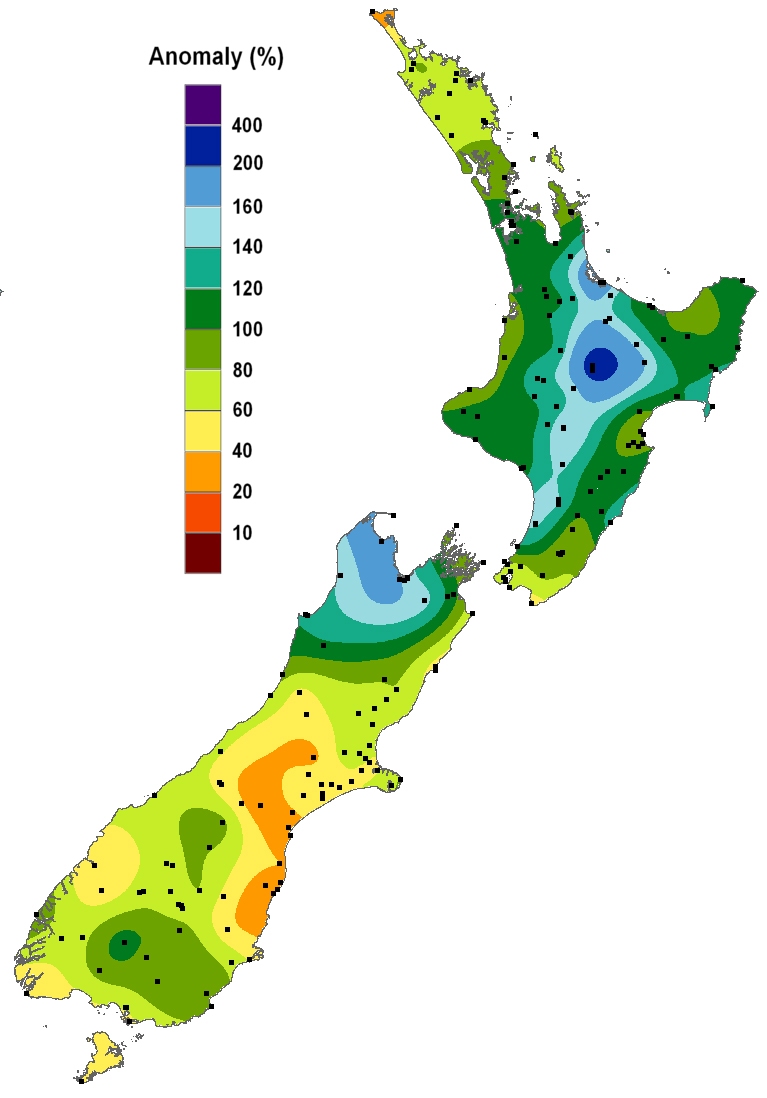 Percentage of normal rainfall for May 2017.