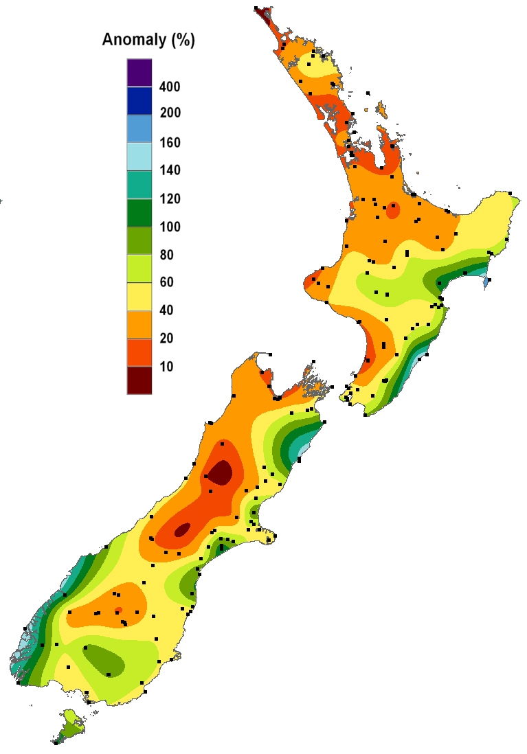Percentage of normal rainfall for December 2017.