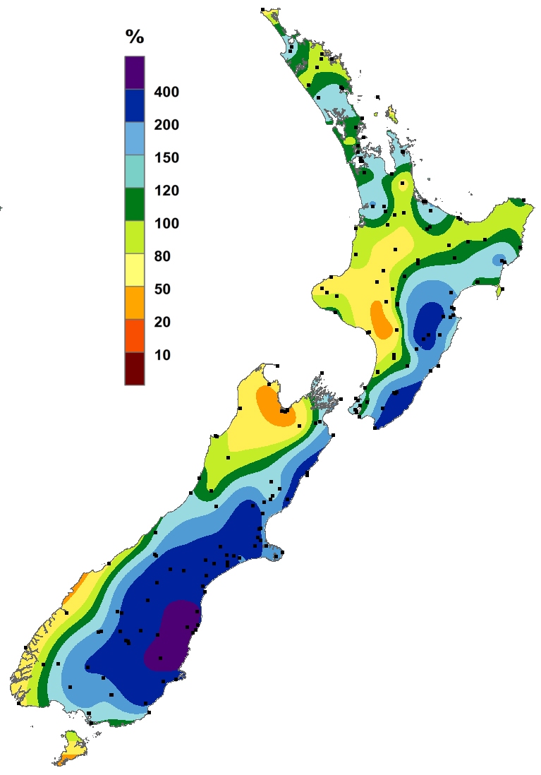 Percentage of normal rainfall for November 2018