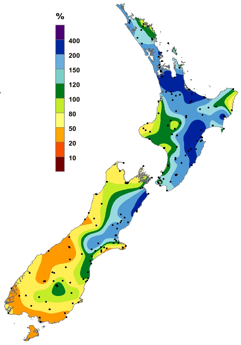 Percentage of normal rainfall for December 2018