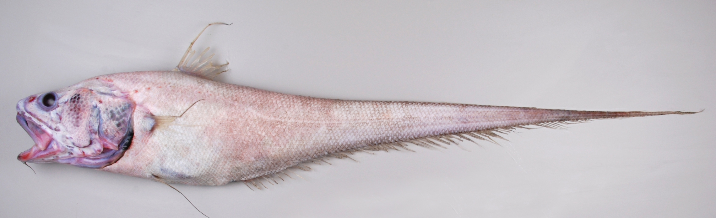 One large white rattail (genus Coryphaenoides) caught at about 2,600 m. Not previously recorded from New Zealand waters. Rare.